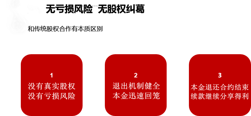 共享分红股东不稀释原有股份,不参与门店经营,不参与原始股份的分红,只享受分红股东自己带来客户的分红。共享分红股东无需参与管理,也不用承担房租、水电、工资和货品积存的压力和风险。