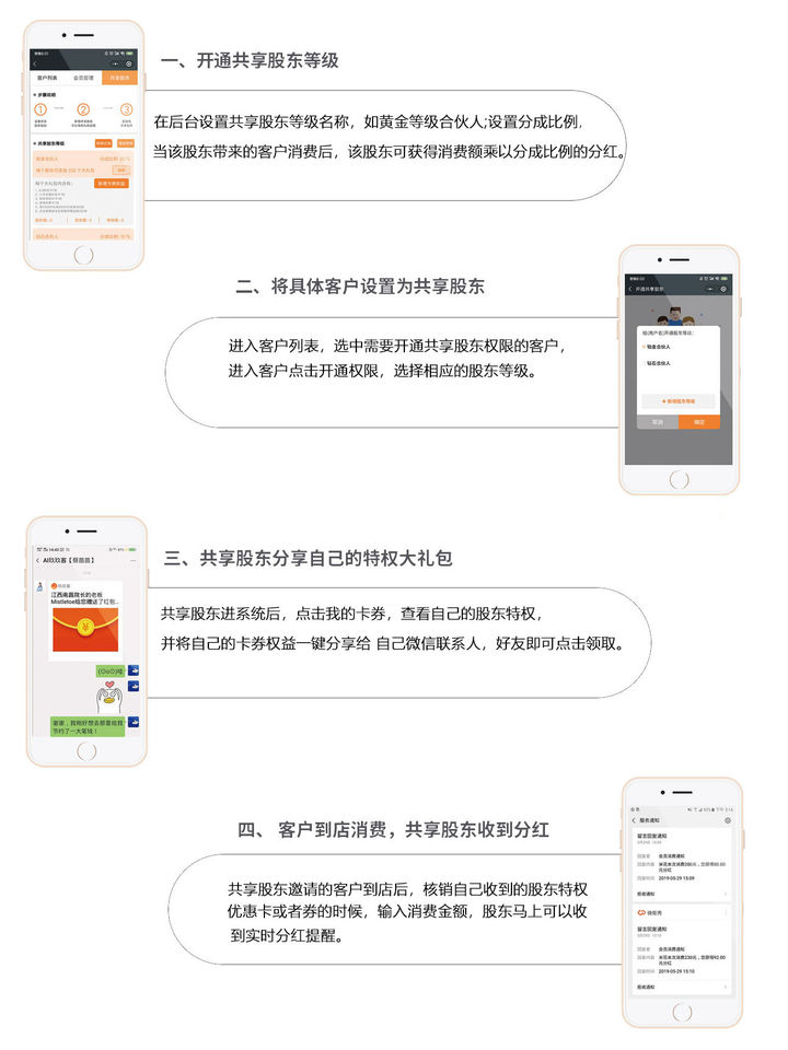 做共享门店商业模式使用共享门店系统有助于解决门店老板和介绍人之间的信任问题,因为通过系统,介绍人推荐的新客户会被直接绑定在其账号上,新客户初次消费,以及后续的重复消费,系统都会自动把分红发到介绍人账号。正是因为解决了这个问题,共享门店这个模式才能够真正的运行起来。