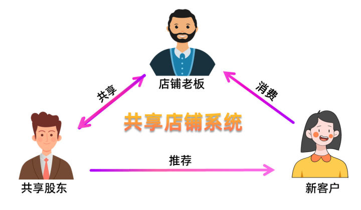 共享店铺:无人流要求,租金低,众筹开店,投入低、0风险,盈利点丰富,口碑分享,关系分享,全方位引流,共享股东自动引流到店。