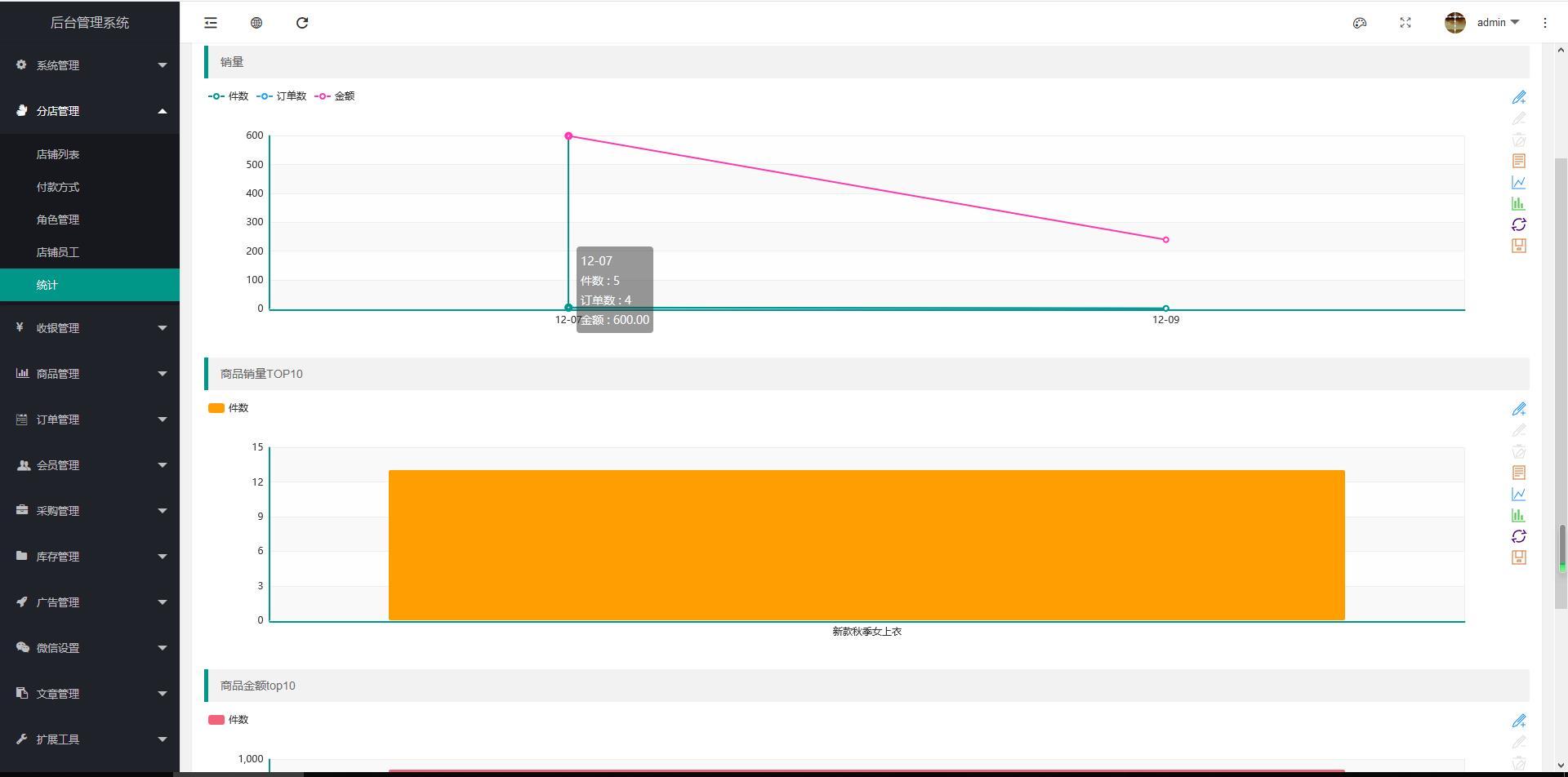 五、数据统计:销售情况、门店统计、收入报表、会员统计、库存管理、出入订单、员工绩效等等,简洁明了,透明可视。