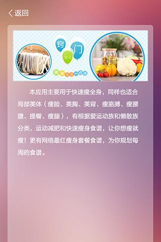 2.瘦身食谱:APP会收集各种成功的减肥食谱,可以选择自己喜欢的收藏并使用。还支持减肥食谱上传以及根据现有食材推荐大致相符食材的减肥菜谱 。